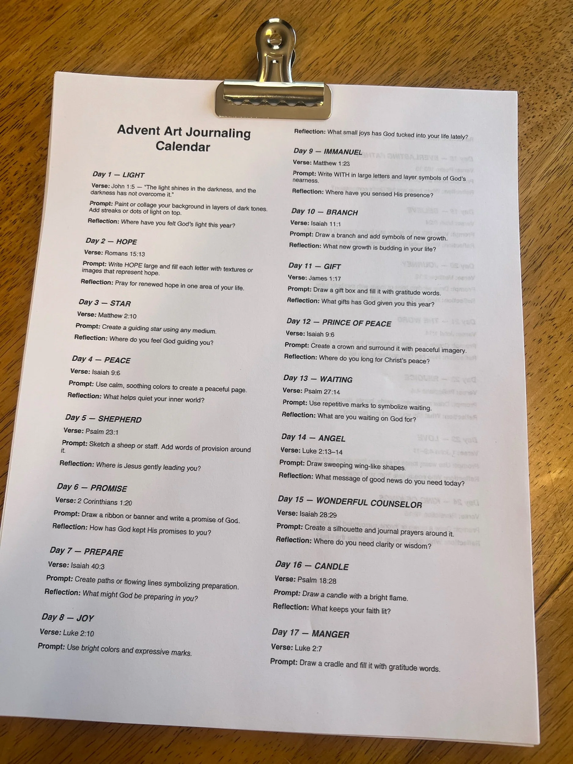 Shop › FREE PRINTABLE: ADVENT ART JOURNALING CALENDAR Image 1 of 4 Image 2 of 4 Image 3 of 4 Image 4 of 4 FREE PRINTABLE: ADVENT ART JOURNALING CALENDAR $0.00 Prepare your heart for Christmas! Use this calendar of prompts to start a journaling or art practice for each day of Advent. Add To Cart Added! Prepare your heart for Christmas! Use this calendar of prompts to start a journaling or art practice for each day of Advent.